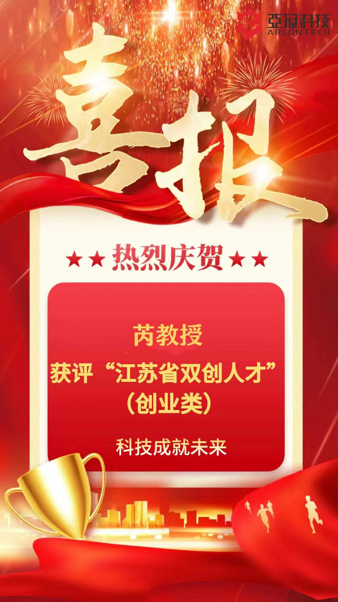 喜報!熱烈慶賀芮教授獲評“江蘇省雙創人才”(創業類)!.......